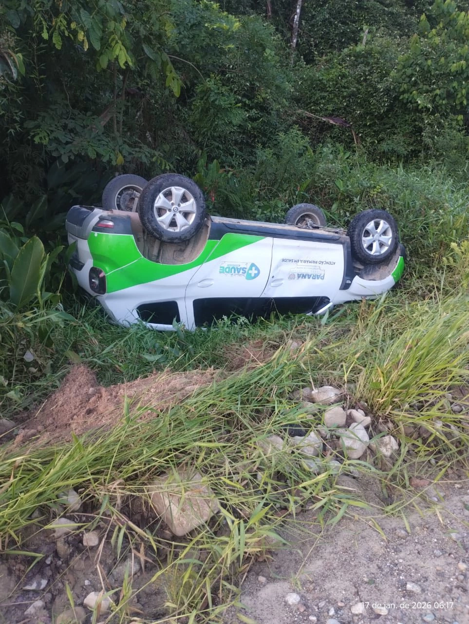 Um veículo oficial da Secretaria Municipal de Saúde de Guaraqueçaba se envolveu em um acidente de trânsito na madrugada deste sábado,17/01, na rodovia PR-405, no trecho entre as comunidades de Rio Guaraqueçaba e Morato.