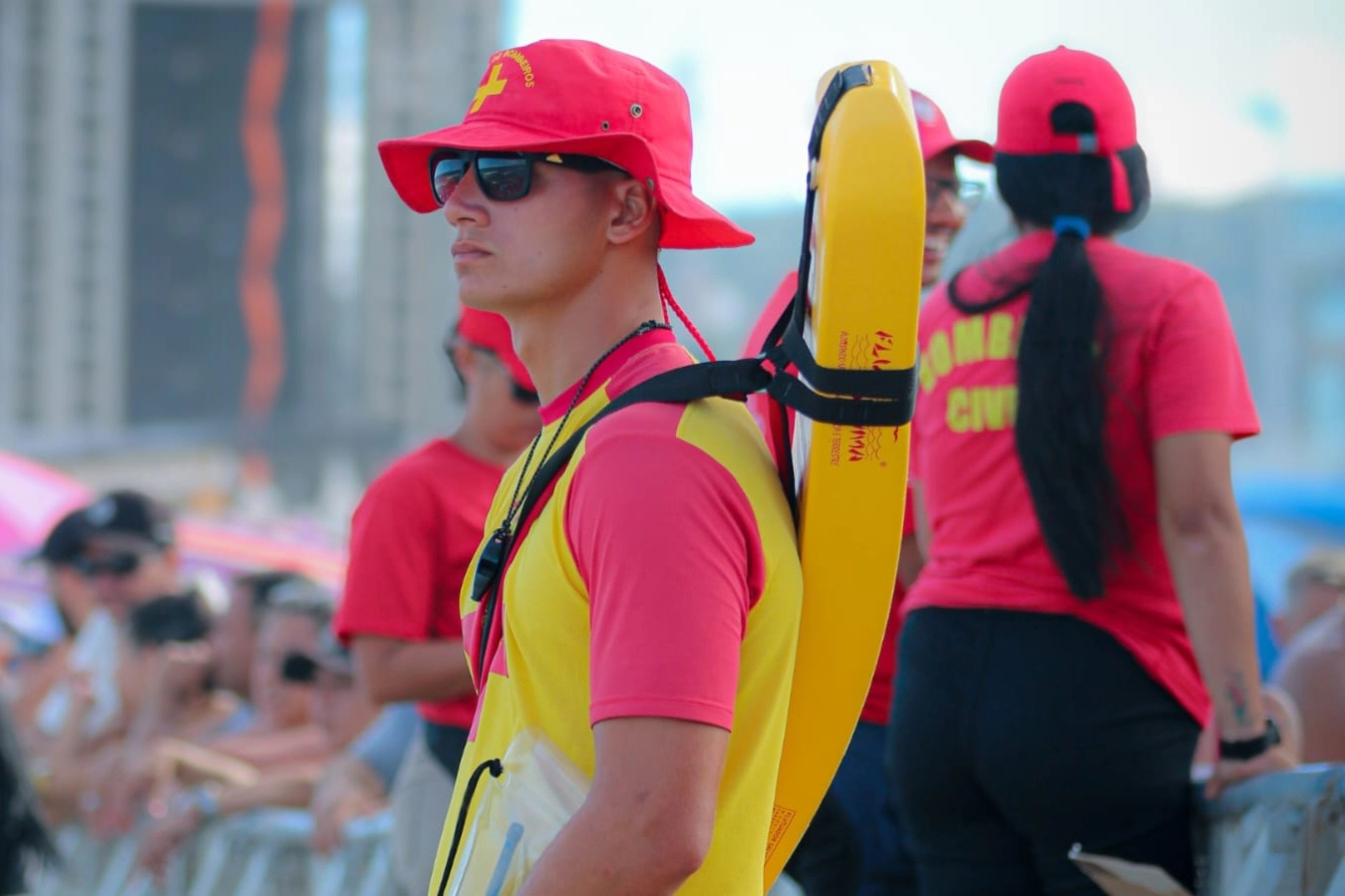 Durante todo o dia, guarda-vidas permaneceram distribuídos ao longo da orla, enquanto equipes do SIATE ficaram de prontidão antes, durante e após os eventos, garantindo resposta rápida em situações de emergência.
